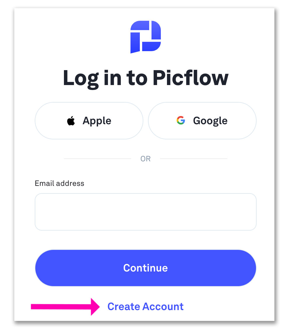 If you already have an account with the email address you provided to me, log in. If not, you can click Create Account to create a free account with the email you provided to me to see your galleries.